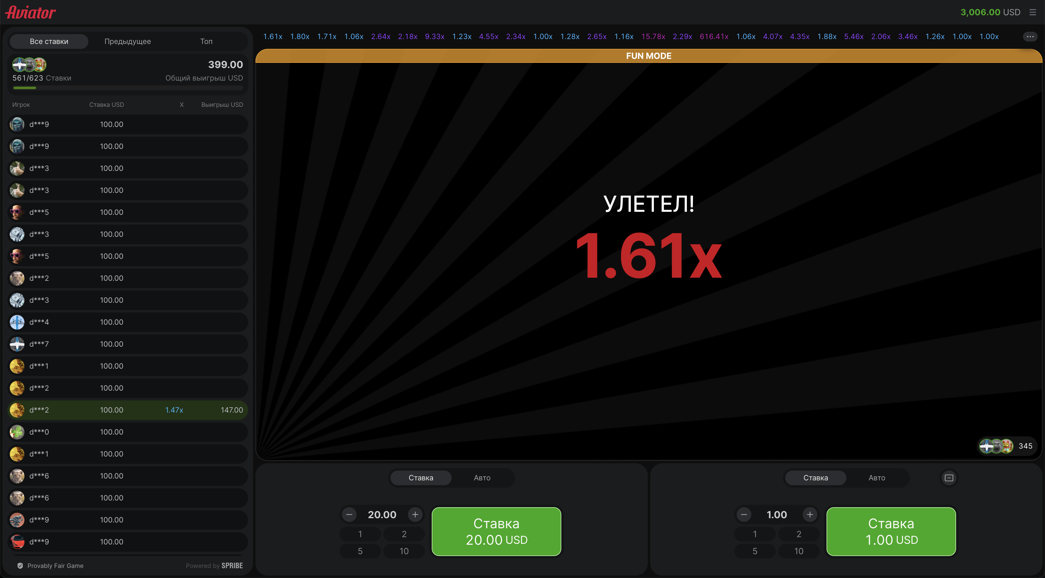 В Aviator есть режим двойной ставки - можешь делать две ставки одновременно в одном раунде. Одну зафиксировать безопасно на х1.8, вторую оставить на удачу и ждать х10 или выше. Автоставка повторяет выбранную сумму каждый раунд, автовывод забирает выигрыш автоматически на заданном коэффициенте типа х2.0 - помогает не поддаваться эмоциям. Максимальный коэффициент может достигать х1000, хотя большинство раундов завершается в диапазоне х1.3-х3.0.